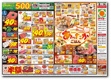 開店9:30~閉店深夜0:00 ※広告商品は朝9時30分からの販売とさせて頂きます。当店取り扱いの広告商品は上記チラシにてご確認をお願い致します。 |