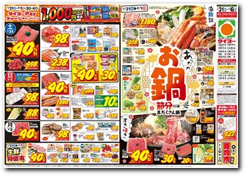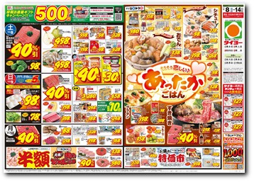 開店9:30~閉店22:00 ※広告商品は朝9時30分からの販売とさせて頂きます。当店取り扱いの広告商品は上記チラシにてご確認をお願い致します。 |