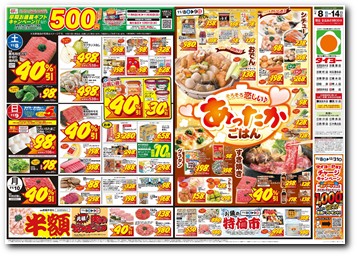 開店9:30~閉店23:00 ※広告商品は朝9時30分からの販売とさせて頂きます。当店取り扱いの広告商品は上記チラシにてご確認をお願い致します。 |