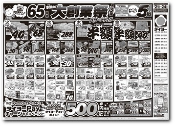 開店9:30~閉店21:00 ※広告商品取り扱いは「たまご・砂糖・米」のみになります。朝9時30分からの取扱いとなります。あらかじめご了承下さい。 |