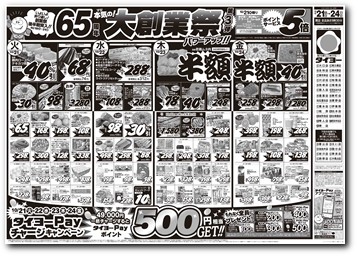 1階 開店9:30~閉店21:00 2階 開店9:30~閉店19:00 ※広告商品取り扱いは「たまご・砂糖・米」のみになります。朝9時30分からの取扱いとなります。あらかじめご了承下さい。 |