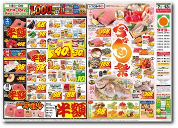 開店9:30~閉店22:00 衣料 開店9:30~閉店20:00 ※広告商品は朝9時30分からの販売とさせて頂きます。当店取り扱いの広告商品は上記チラシにてご確認をお願い致します。 |