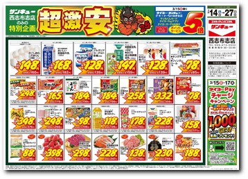 開店9:30~閉店22:00 ※広告商品は朝9時30分からの販売とさせて頂きます。当店取り扱いの広告商品は上記チラシにてご確認をお願い致します。 |