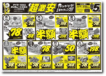 開店9:30~閉店21:00 ※広告商品は朝9時30分からの販売とさせて頂きます。当店取り扱いの広告商品は上記チラシにてご確認をお願い致します。 |